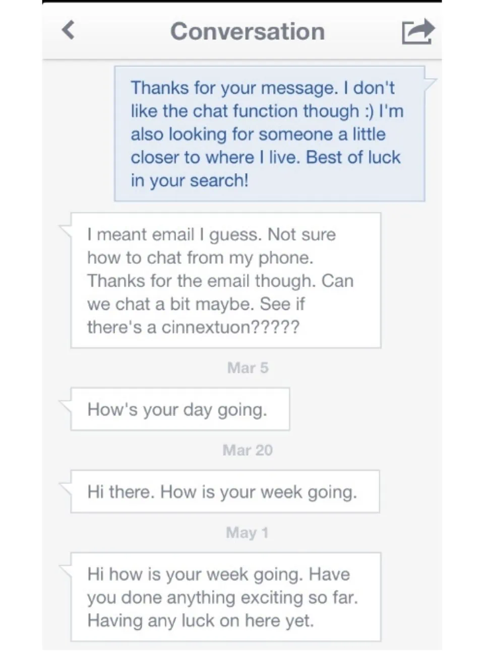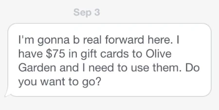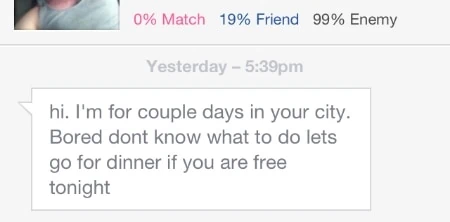 1. Why bother crafting a message based on their profile when you just copy and paste the lyrics of a dreary country song?