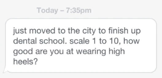 13. Of all the pick-up lines she’s seen a million times before, this has to be one of the most mundane.